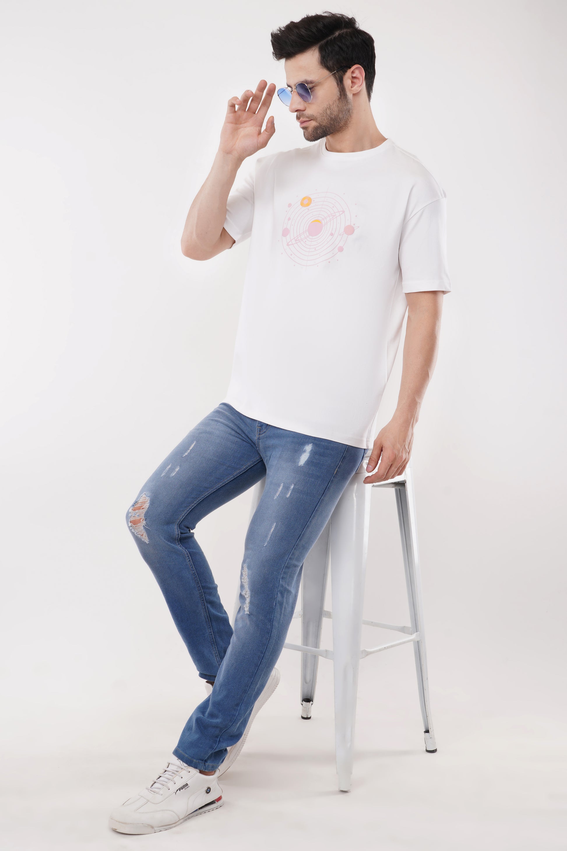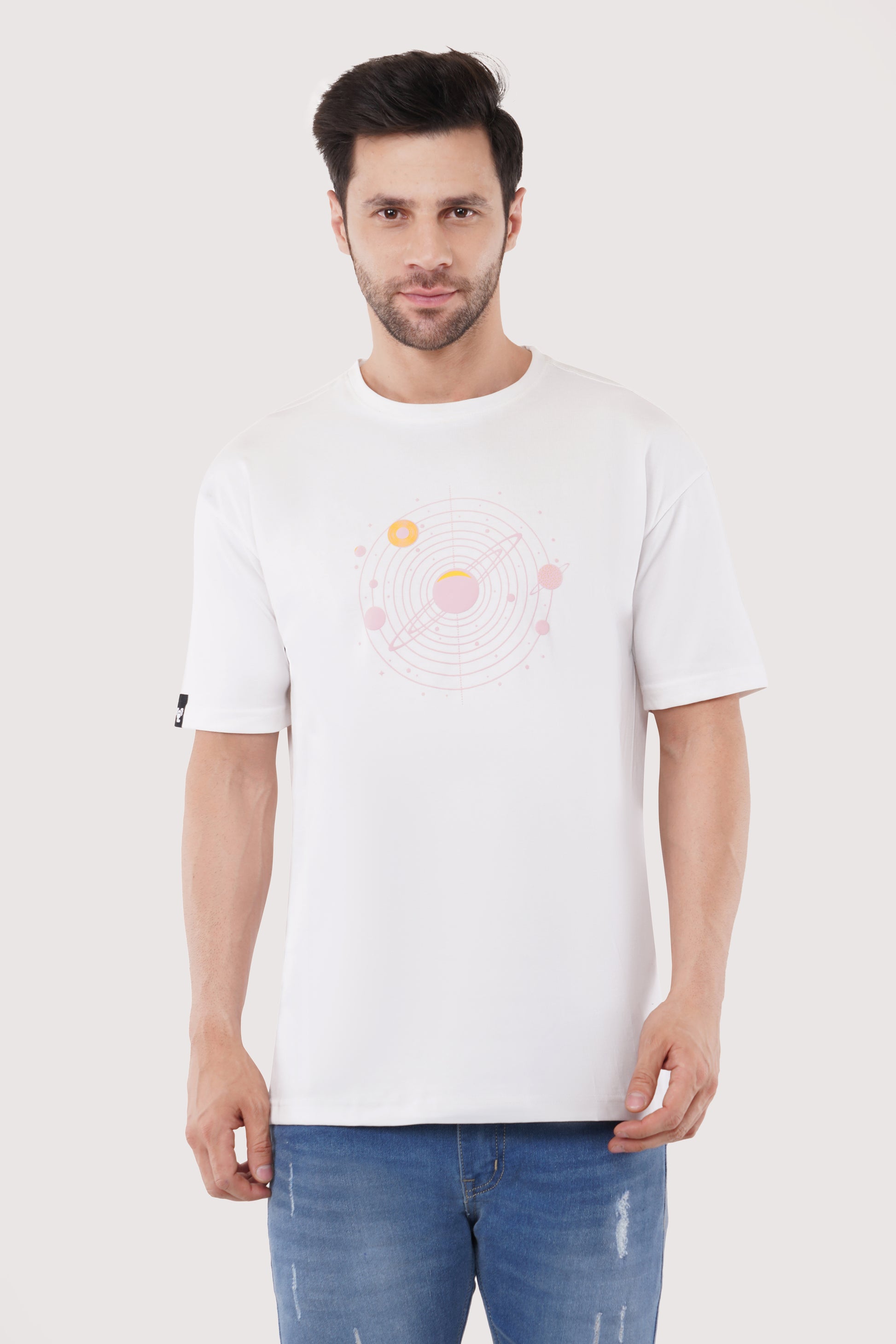 The minimalist pastel planetary graphic at the chest adds a subtle yet stylish touch, making it perfect for casual outings, travel, or lounging. Its relaxed fit and smooth finish ensure all-day comfort without compromising on style.